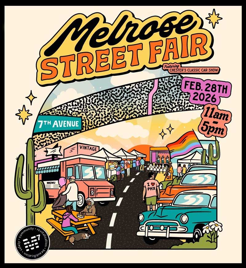 The Melrose 7th Avenue Street Fair is a one-day event covering over a half mile in the Melrose District on 7th Avenue from Indian School Road to Camelback Road. This free event has over 200 local and independent artisans, food trucks, live musicians, a farmer’s market, a kids zone, a craft beer garden, and a Classic Car Show.